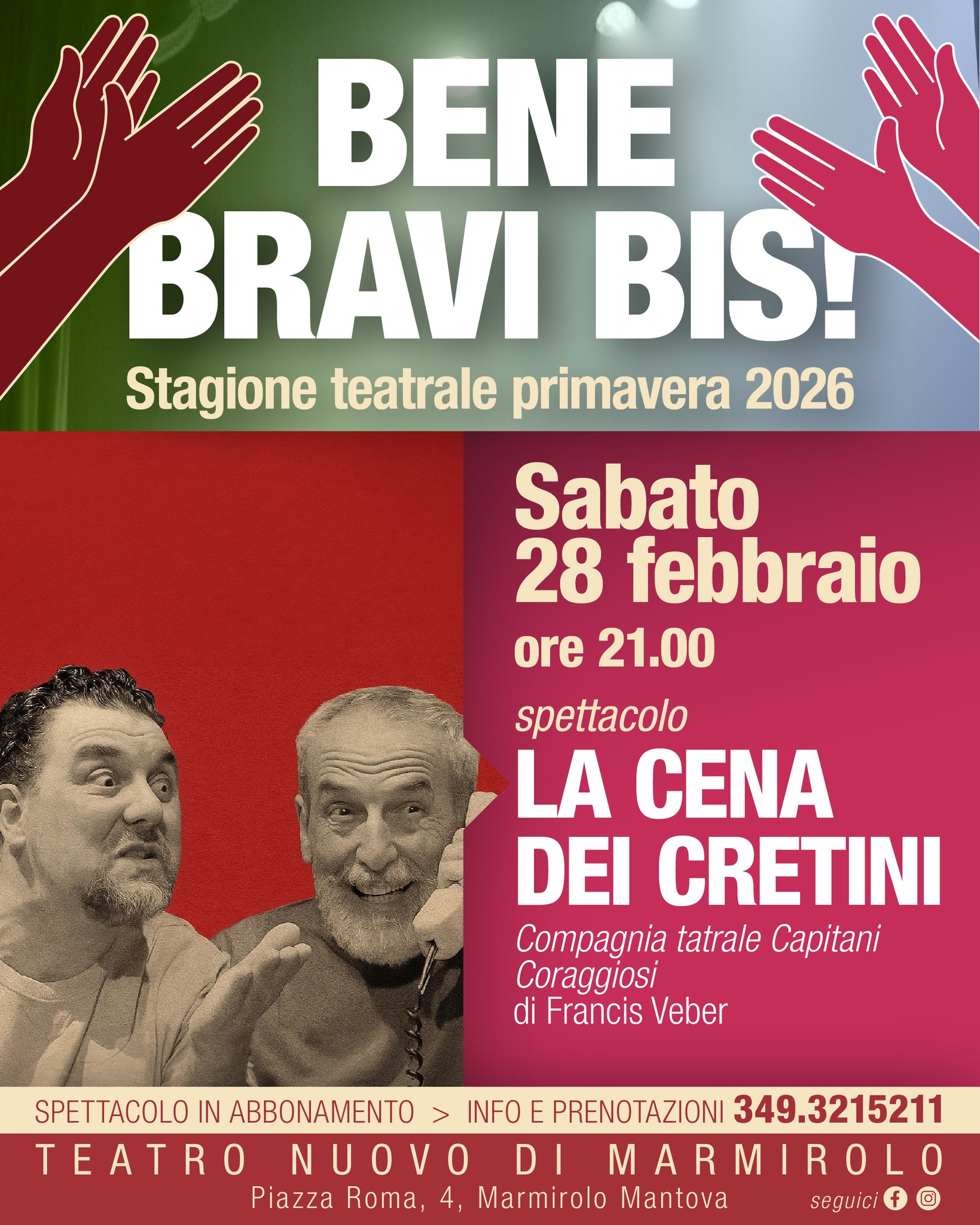 Un classico della commedia francese, un grande successo che da oltre vent’anni diverte, affascina ed emoziona le platee di tutto il mondo. Un gruppo di ricchi borghesi parigini per divertimento, ogni settimana organizza una cena in cui ognuno di loro invita un “cretino”: il migliore vincerà la serata. Il protagonista Pierre, editore, è bloccato a casa dal colpo della strega e decide di anticipare la conoscenza di Francois Pignon, invitandolo da lui con la scusa di parlare del suo hobby, cioè costruire monumenti famosi con i fiammiferi, con l’eventualità di pubblicarne un libro. Da qui si succederanno una serie di situazioni esilaranti ad opera del cretino, con scambi di persone e telefonate che contribuiscono all’intreccio della trama, fino ad invitare a casa un suo collega agente delle tasse, specializzato in evasioni fiscali...