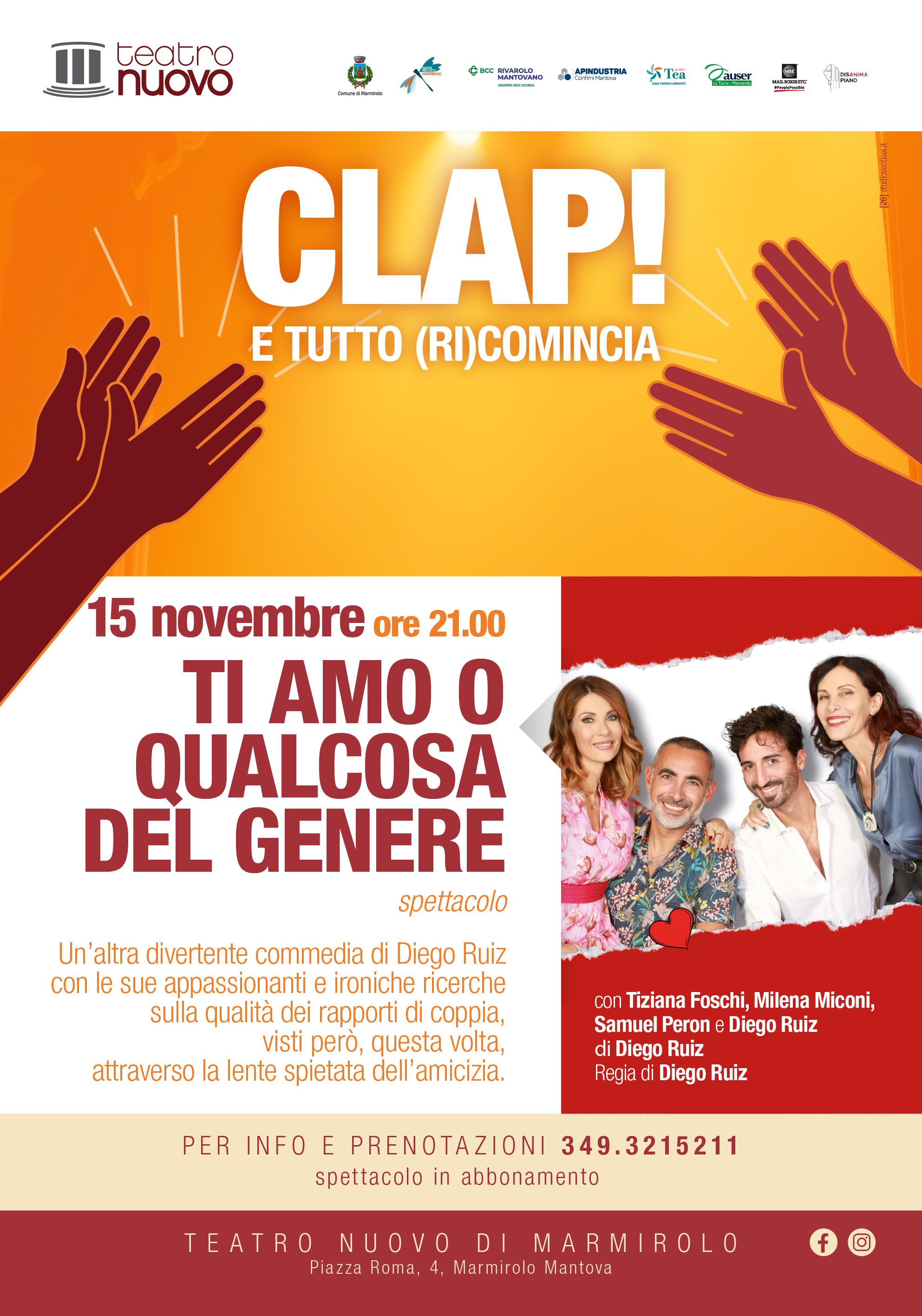 Partner e Sponsor: Auser La Torre Marmirolo, Nuova Pro loco Marmirolo, Gruppo Manifestazioni Marmirolese, Disanima Piano, BCC Rivarolo Mantovano, Apindustria, Gruppo Tea e Mail Boxes etc